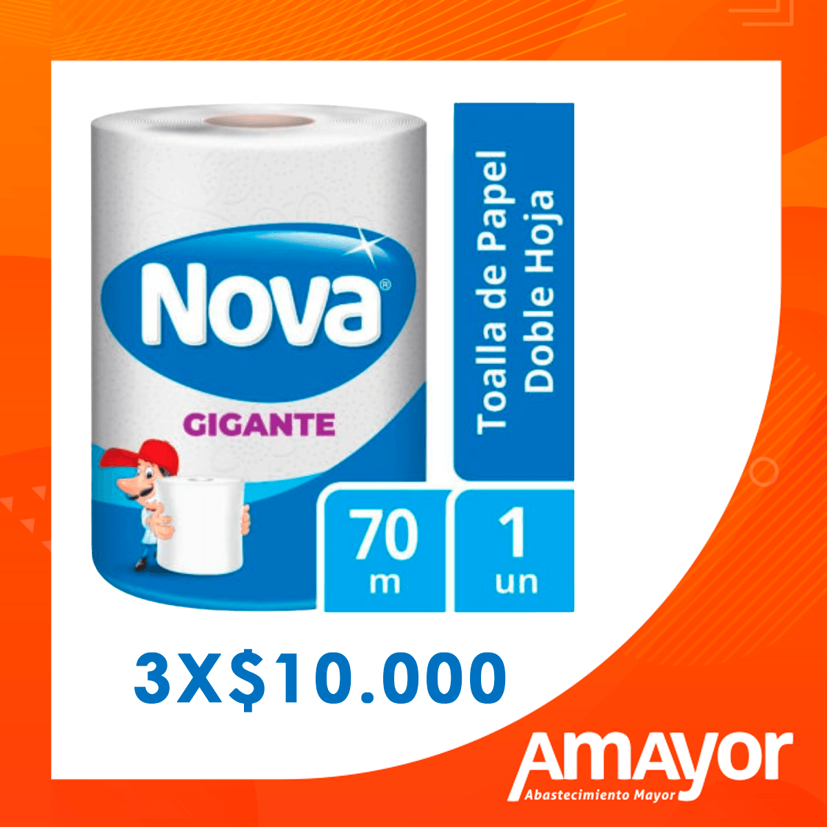 Optimiza el abastecimiento de tu negocio con la Toalla Nova Ultra Grande en presentación 3×10.000 (pack de 3 unidades). Diseñada para alto rendimiento en entornos de trabajo, ofrece gran capacidad de absorción, durabilidad y rendimiento por rollo, ideal para cocinas comerciales, minimarkets, almacenes y restaurantes.